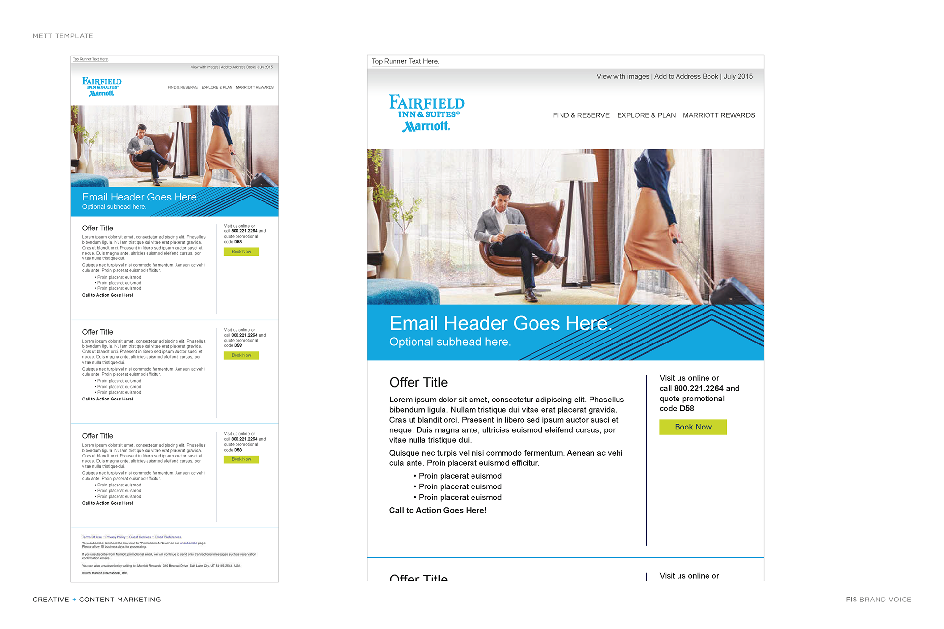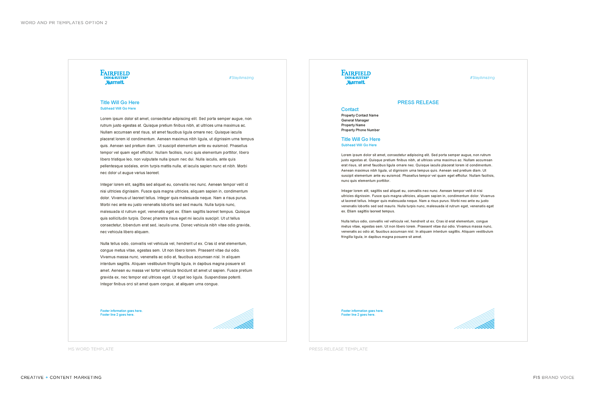 New brand voice creative for Fairfield Inn and Suites by Marriott.