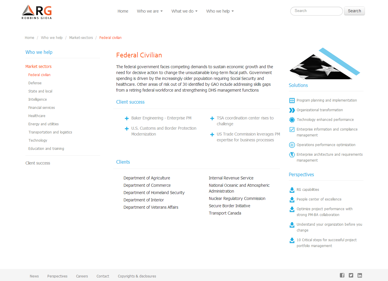 Website for Robbins Gioia, a project management consulting firm in Alexandria, Virginia.
